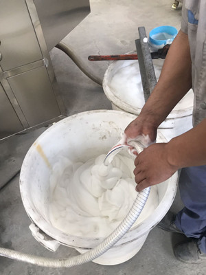 全自動乳膠發泡機30型,雙頭操作,自帶電腦控制屏,可以自動計量,自動控制,現場師傅調試試機,發泡出泡沫細膩,非常好。此臺全自動乳膠發泡機用于發泡乳膠文胸或者乳膠小件。試機成功,可以打包發貨啦