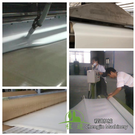 4. 涂膠、硫化、水洗、烘干、沖孔、裁斷同在一條線完成、