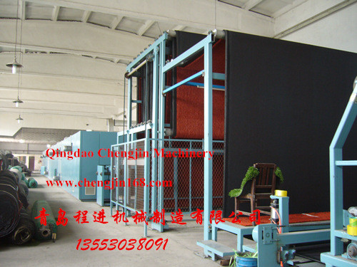 青島程進機械制造有限公司是專業生產地毯涂膠機械,采用德國領先技術創新而成,下面介紹一下我公司生產的地毯涂膠設備 ,該設備主要用于草坪、地毯或各種平面基材上膠,成套設備分為發泡涂膠機,硫化,隧道烘干,成卷部分,其中乳膠發泡機為全自動連續低速空氣混合涂膠。草坪、地毯涂膠機系列的最大有效涂膠寬度為2000-6000mm,涂膠車速1-6m/min。本設備采用電氣兩用(硫化系統),電機功率80-150KW,機械總長度35-45m。