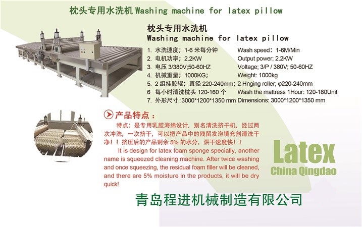 青島程進機械制造有限公司可生產枕頭、床墊專用水洗機,可根據客戶要求制作不同規格產品,同時負責安裝、調試,并提供配方等一條龍服務。