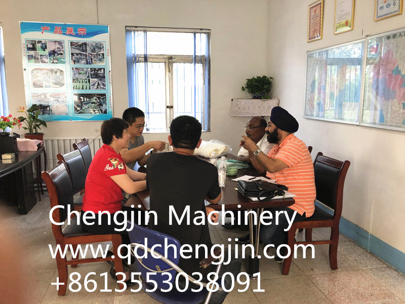 印度客戶專程從印度飛往青島來我公司驗收乳膠鞋材生產線,經理和技術人員給客戶詳細講解了生產線的整個過程,